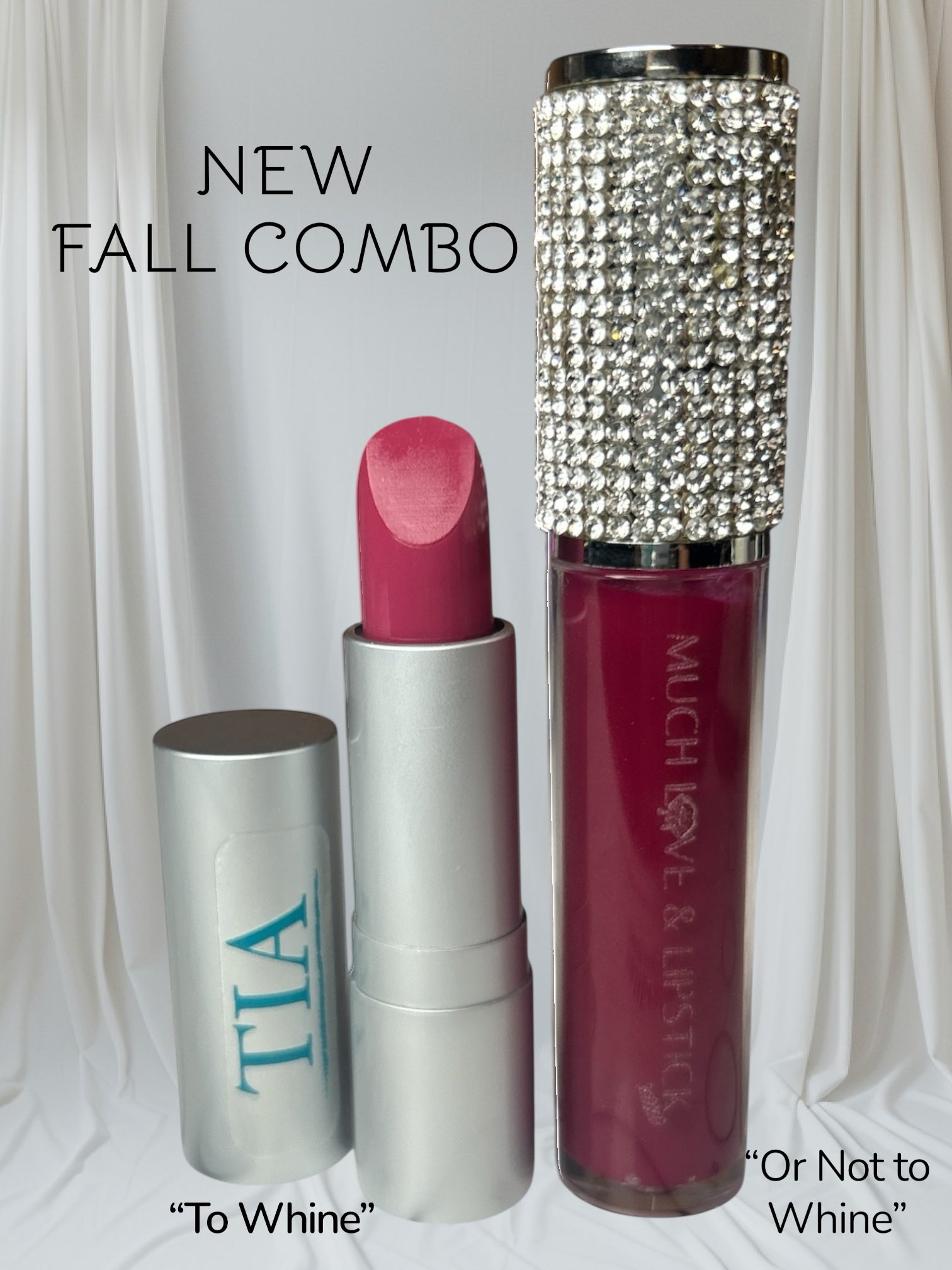 Elevate your fall look with the "OR Not To Whine" Lip Polish in a vibrant wineberry tone. This high-shine gloss complements the "To Whine" lipstick perfectly, creating a stunning duo that adds depth and richness to your lips. Ideal for autumn, this pairing brings warmth and elegance to any outfit, making your smile the season’s standout feature.